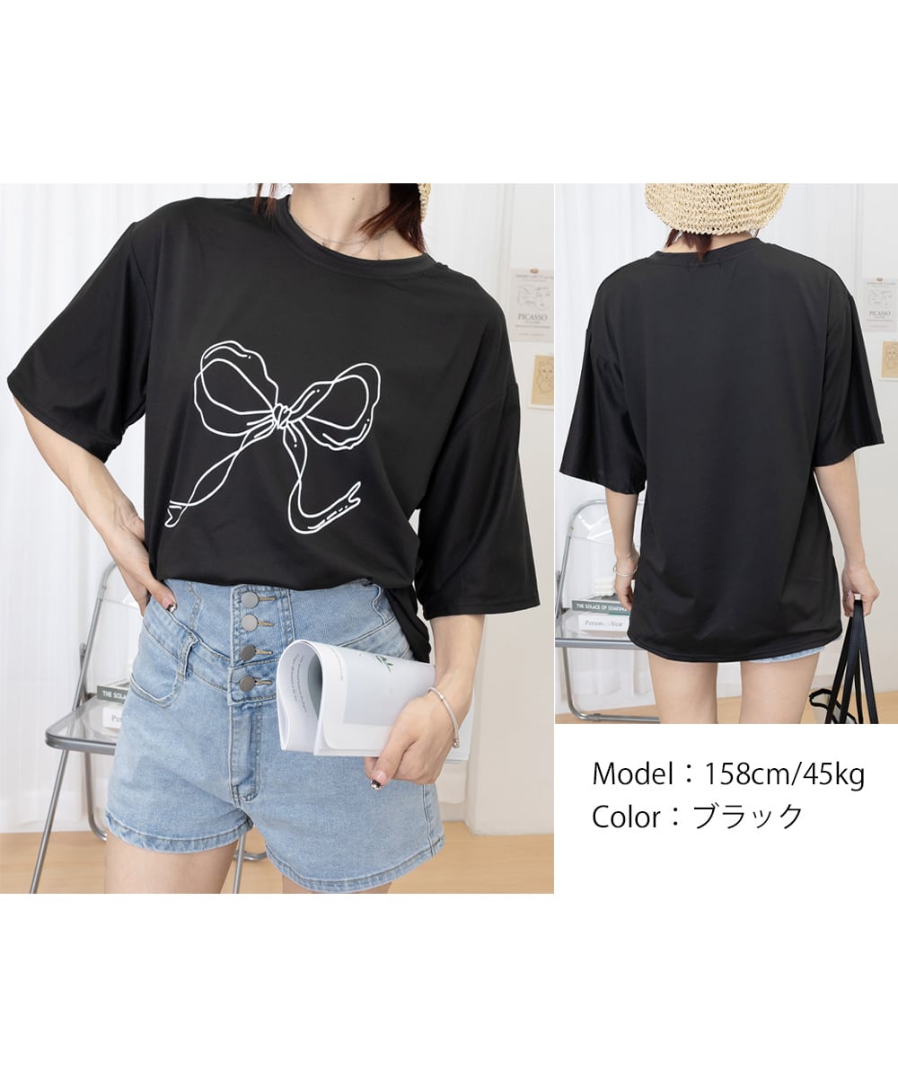 【即納】リボンプリントTシャツ