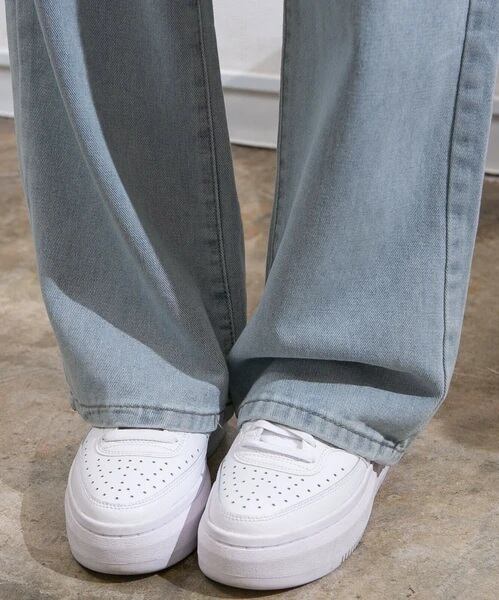 【即納】ウエストレース デニムワイドロングパンツ