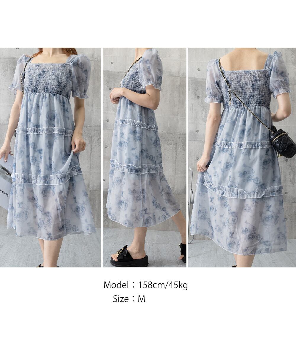 M:総丈約110cm、裏地(ウエストから)約51cm、肩幅約32cm、袖丈約24cm、ゆき約40cm、身幅約31cm、胸囲約62~110cm、ウエスト約58~110cm、ヒップ約130cm