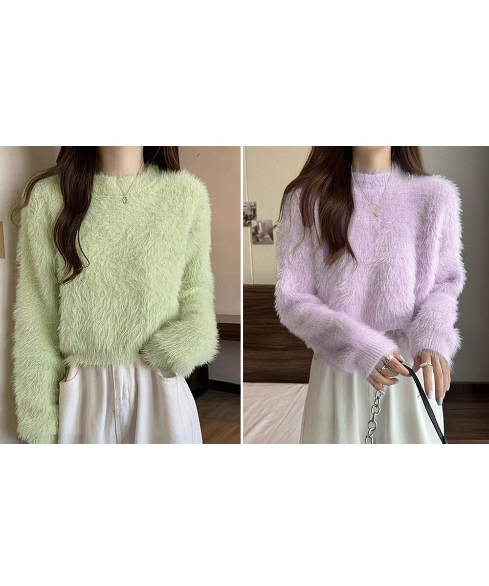 ショート丈シャギーニットトップス