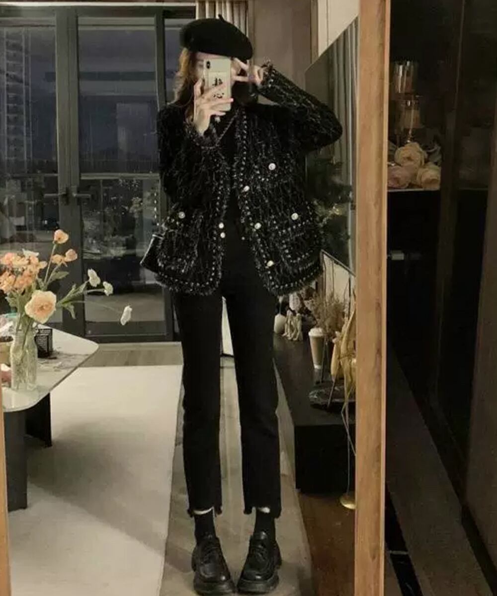 ツイード風ニットジャケット