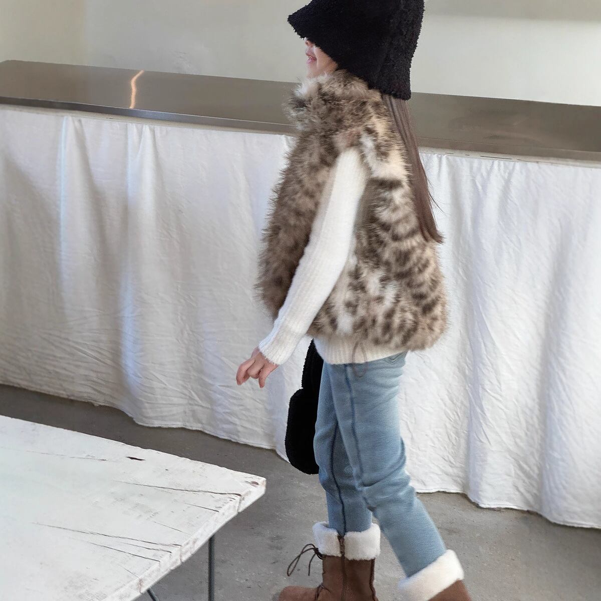 kids ヒョウ柄もこもこベスト