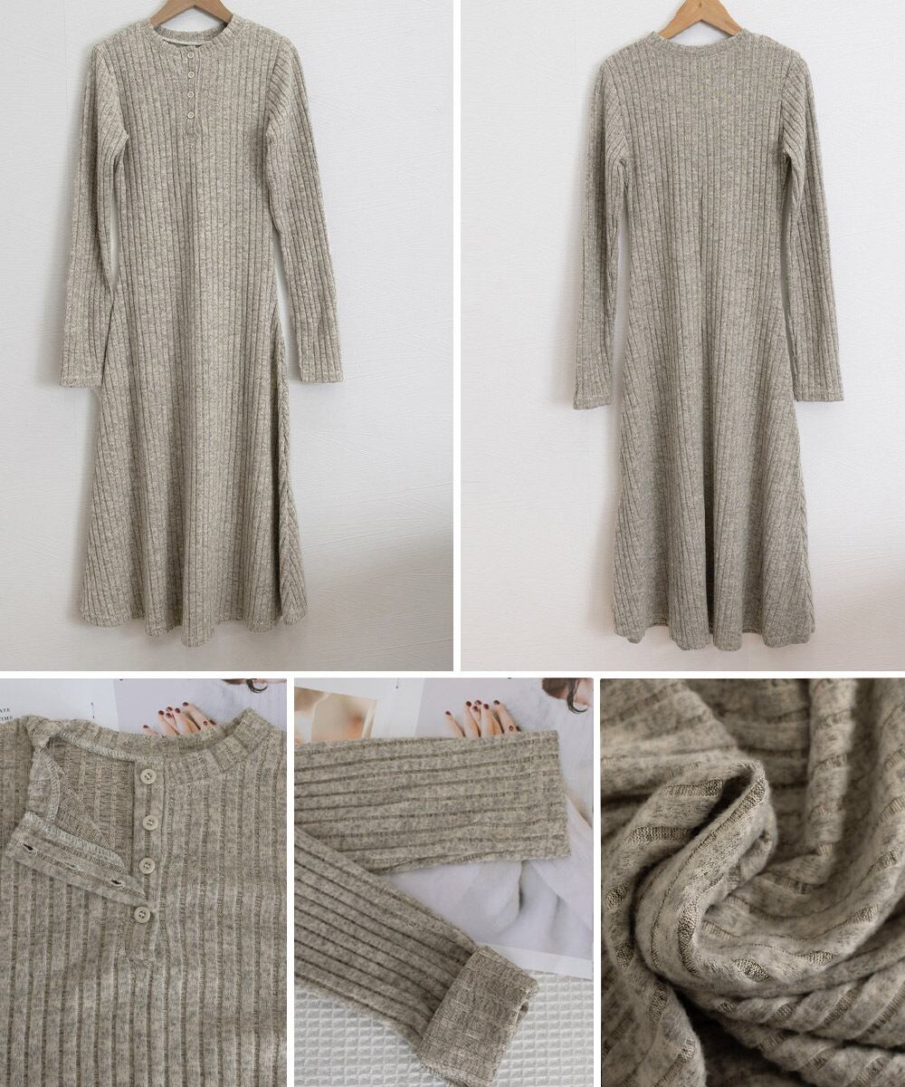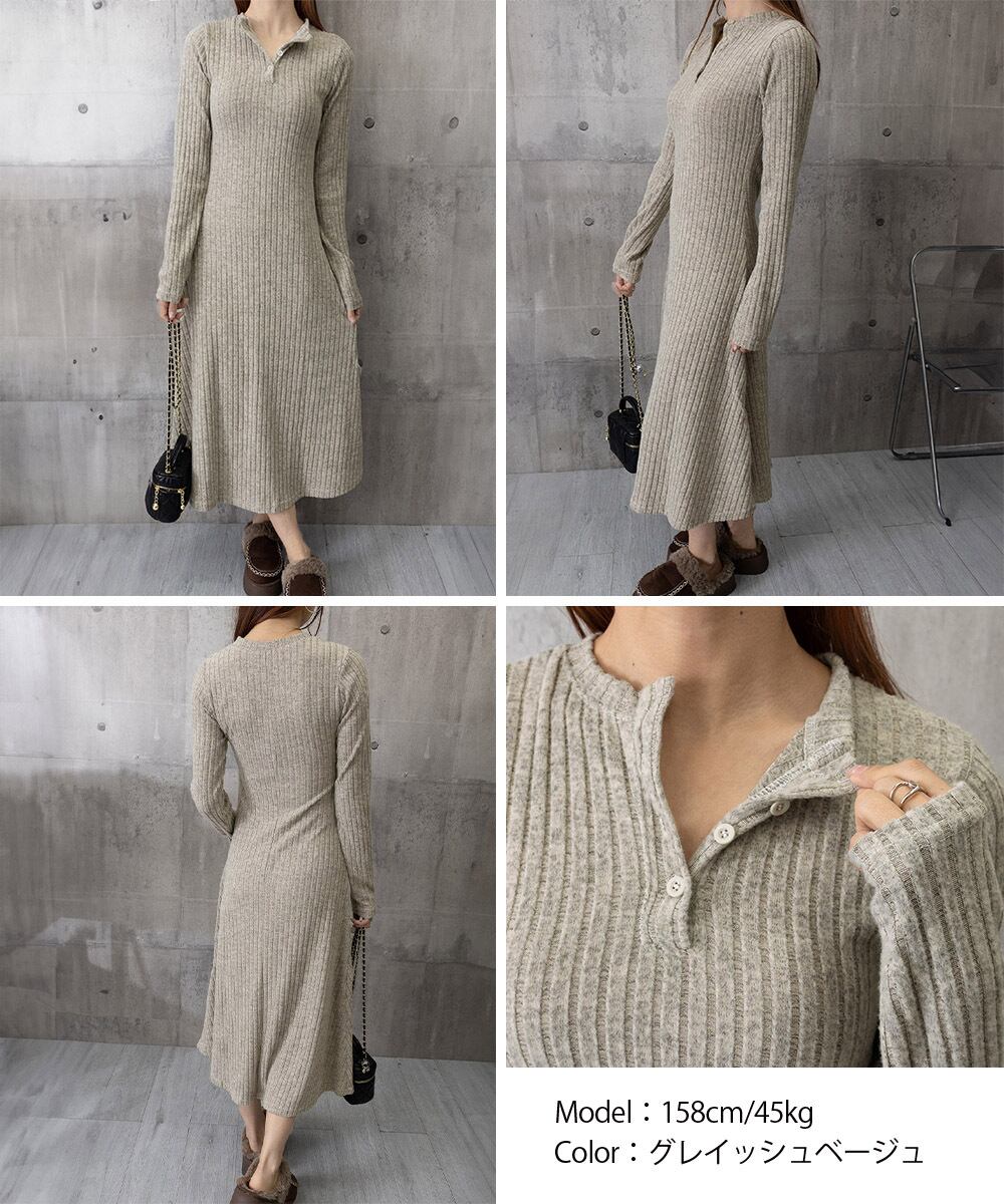 リブニット長袖ロングワンピ ース