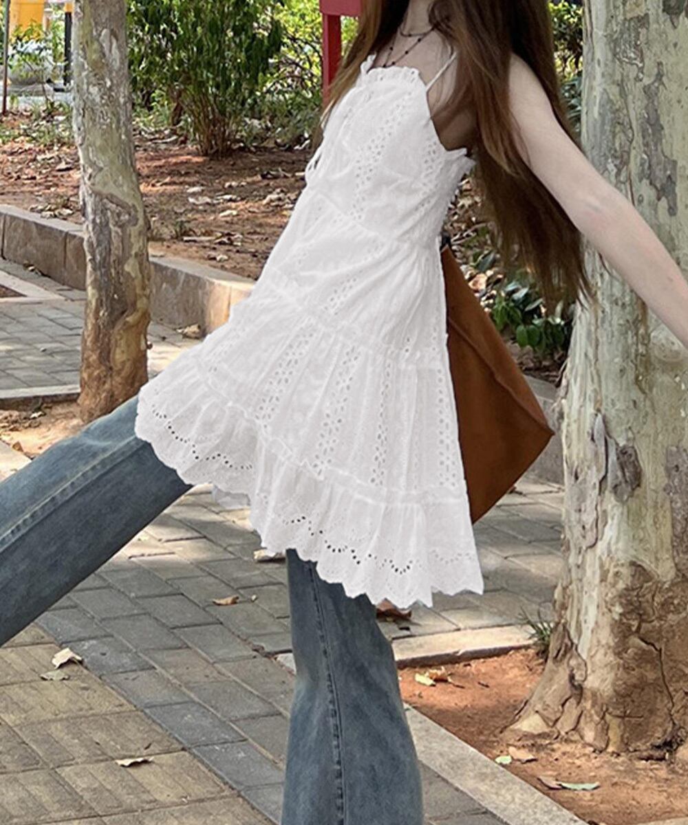 ●サイズ:総丈(肩ひも調節可)約71~79cm、裏地丈約45cm、身幅約27cm、胸囲(バックゴム仕様)約54~92c、ウエスト約95cm、ヒップ約105cm