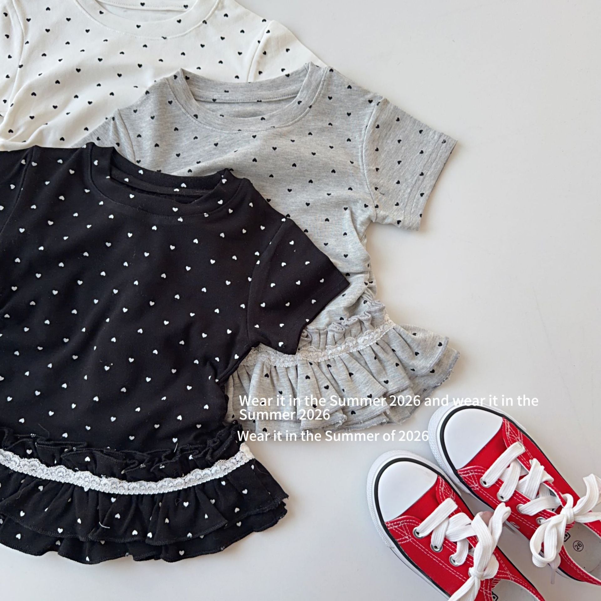 kids ハート柄フリル半袖Tシャツ
