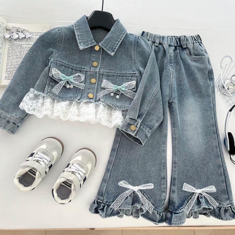 kids レースリボンデニムパンツ