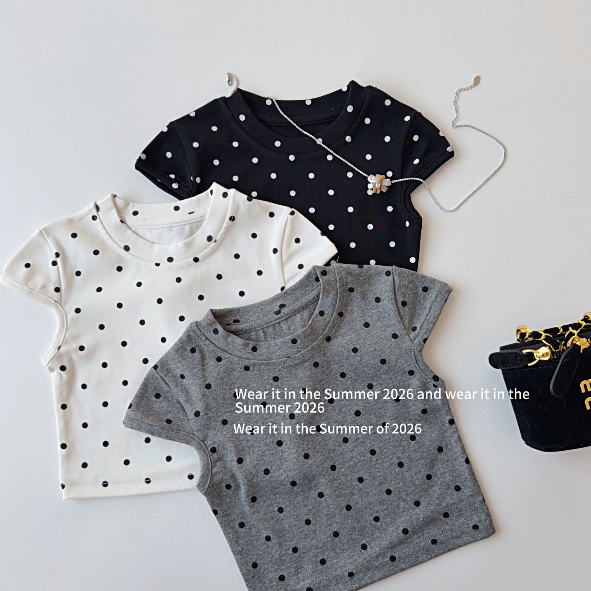 kids フレンチスリーブドット半袖トップス