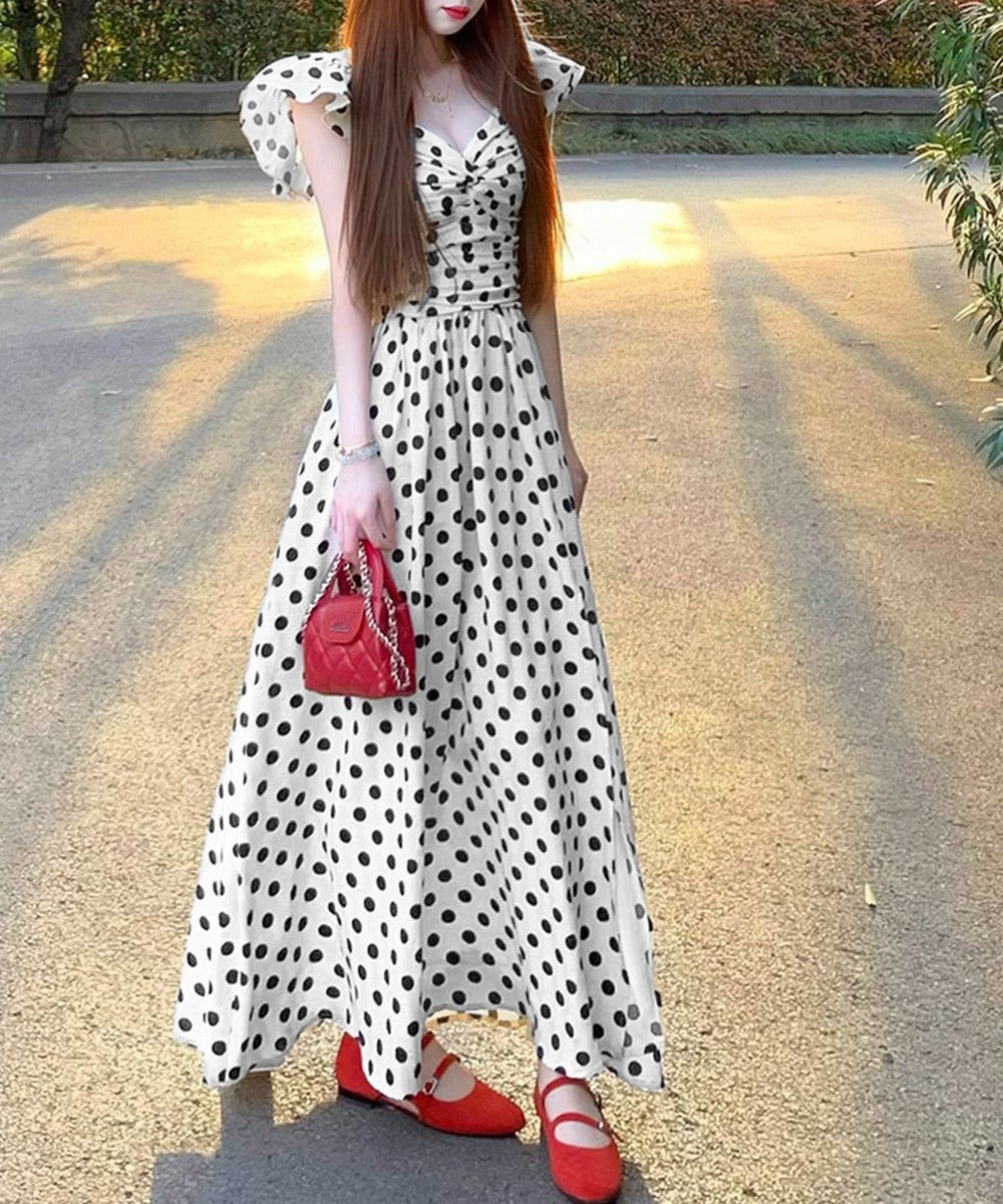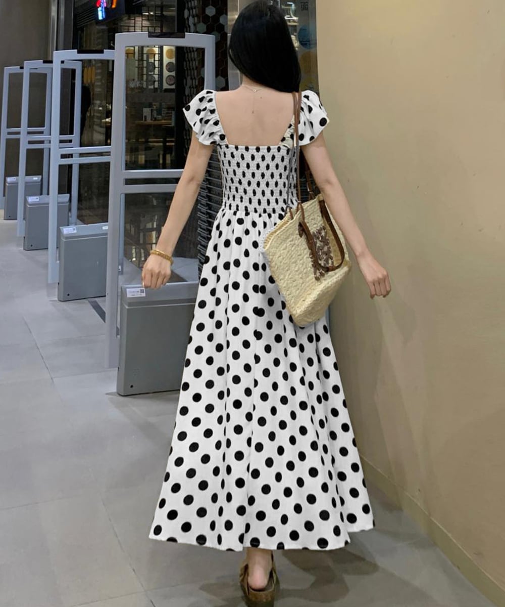 M:総丈約122cm、裏地丈約72cm、身幅約34cm、胸囲(シャーリング仕様)約68~78cm、ウエスト(シャーリング仕様)約64~74cm、ヒップ約138cm