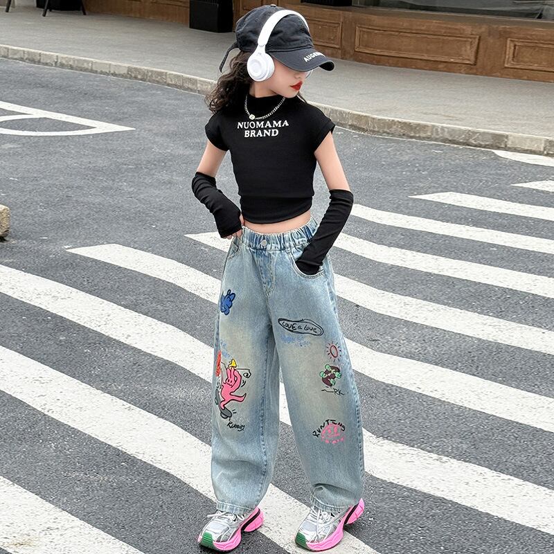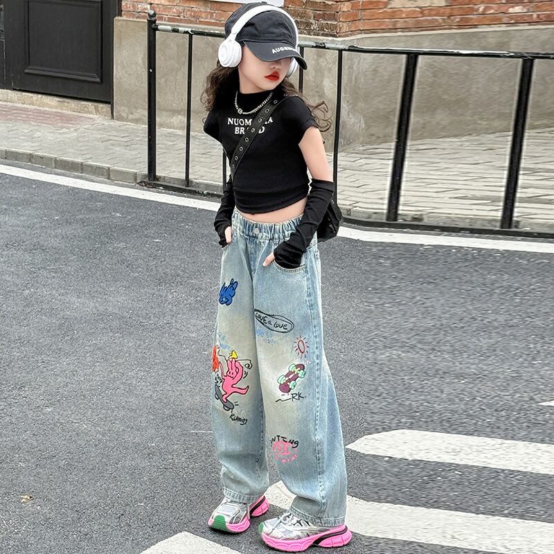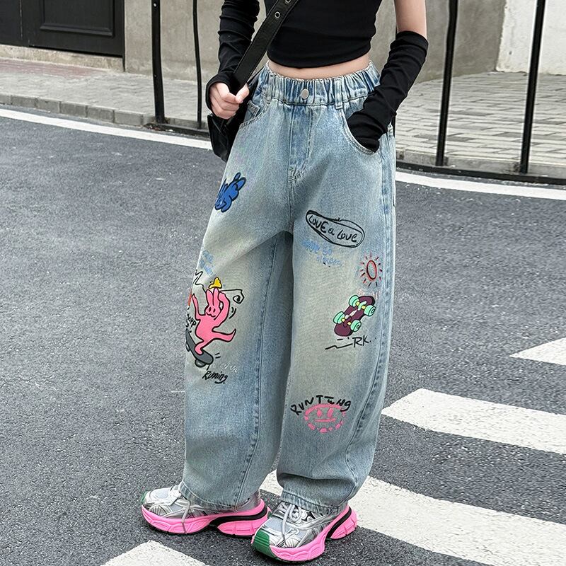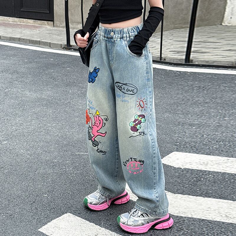 kids プリントデニムロングパンツ